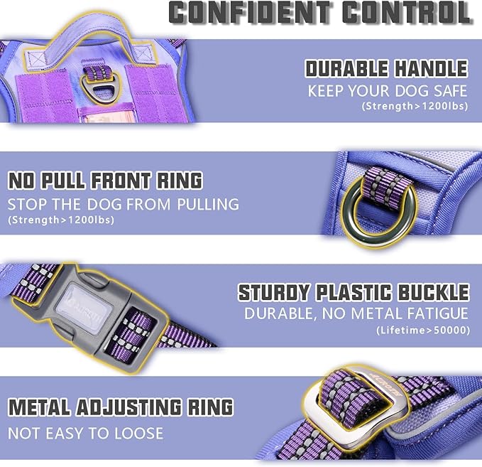 - 【Ultimate Control & SECURITY - Unleash the Power.】 Our no pull dog harness ensures maximum control for your dog with two metal leash attachment points. The front clip provides no-pull control and is great for training, while the back clip is perfect for casual walks or jogging. Walk your dog with confidence and security.