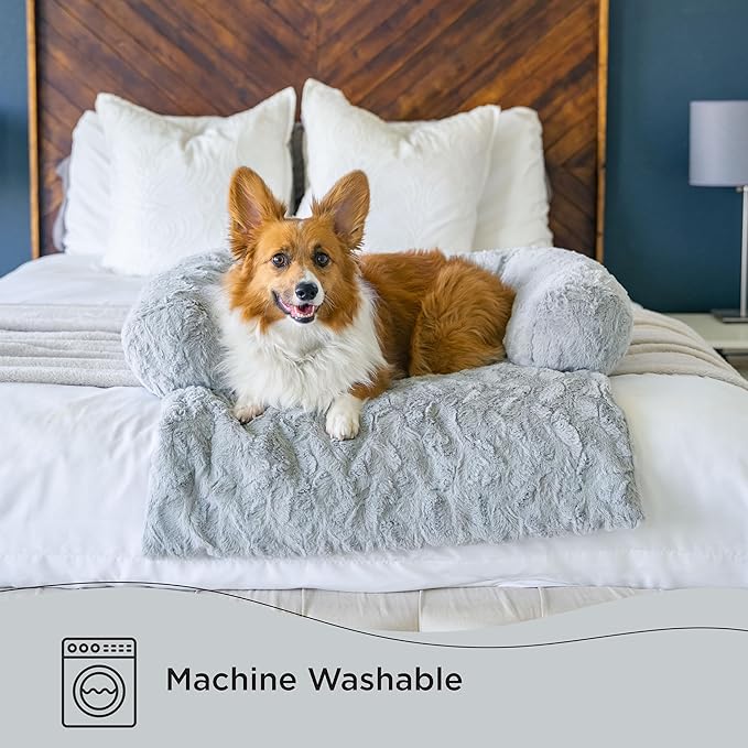 Best Friends by Sheri Calming Dog Blanket with Supportive Bolster, Machine Washable Faux Fur Pet Throw, Gray, Medium