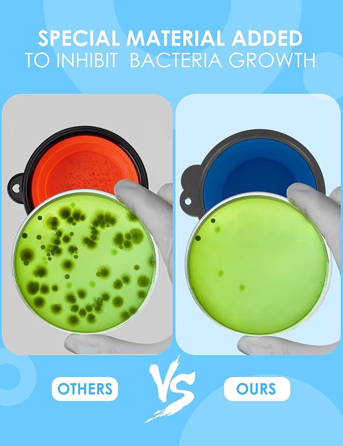 • 【Safety First】Crafted from high-quality, food-grade silicone with a tempting beef flavor, our dog foldable bowl eliminates the typical silicone smell that dogs dislike. BPA-free, dishwasher safe, it's not just convenient but also healthy for your pet.
