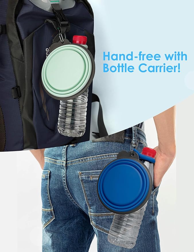 • 【Unique and Different】Aonkey dog bowl set is in a league of its own, addressing issues from feedback on other bowls. The upgraded carabiner boasts a larger, sturdier opening, reducing the risk of breakage. Plus, enjoy the added convenience of bottle carriers, compatible with most cola-shaped water bottles in the market.