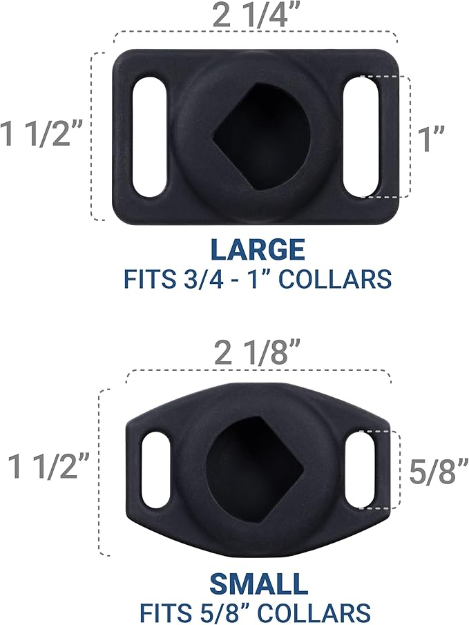 - Compatible with most pet collars – flexible openings designed to fit various collar sizes. Size Large compatible with collars 3/4 inch to 1 inch wide. Size Small compatible with collars 5/8 inch wide.
