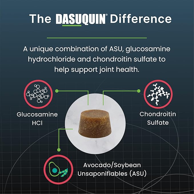 - Joint Health Support for Senior Dogs: Dasuquin, the #1 veterinarian recommended joint health supplement brand◆, contains avocado/soybean unsaponifiables (ASU), glucosamine hydrochloride, and sodium chondroitin sulfate that work better together to support joint health in dogs