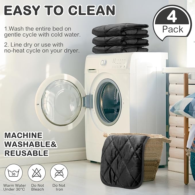 4 Pack Self Heating Cat Pad Self Warming Dog Mat Reflects Body Heat Extra Warm Thermal Pet Pad Washable Dog Cat Bed Crate Bed Mat Blanket(Black,16 x 20 Inch)
