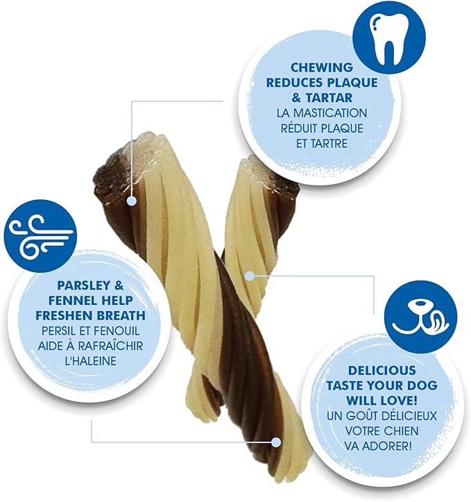 • Our dog dental chews contain natural herbs like parsley and fennel that help act as a dog breath freshener for your canine companion and give them a happy smile.
