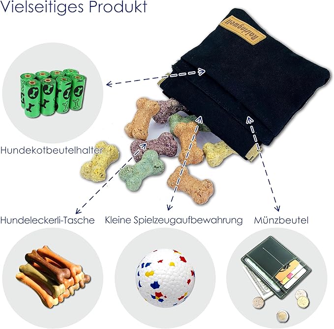 - Durable Material: Raisingwell's dog treat training pouch is crafted from durable, washable, non-toxic vegan fabric, made of pure cotton. In particular, the waterproof lining addresses the issue of difficult cleaning inside the training pouch.