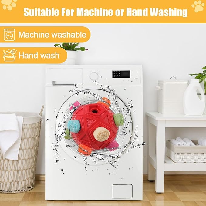 - [Easy to Clean & Use] The pet snuffle ball can be simply hand washed and machine washed. Wash and dry it and then you can reuse it! This toy adds much more fun to your interaction with the dog. Untie the cloth strip at the end of the toy and put it into the snack, then roll it up and stuff it into the hole. The dog finds the snack through its sense of smell and induces the dog's sniffing instinct.