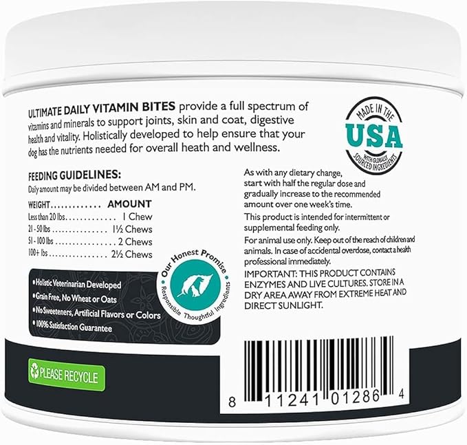- ENHANCED VITALITY AND WELL-BEING - Our Ultimate Daily Vitamins promote vitality and well-being in dogs. With essential omega fatty acids, enzymes, amino acids, and other vital nutrients, they support a shiny coat, healthy skin, boosted energy levels, and overall health.