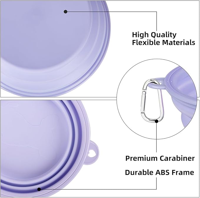 Kytely Collapsible Dog Bowls 2 Pack - X-Large 1500ml Portable Pet Food & Water Bowl for Travel, Hiking, Walking - Foldable Feeding Dish with Carabiner Clip - Lavender & Pink (Dogs/Cats)