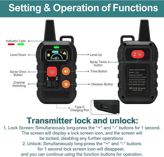 - 【Suitable for All Sizes of Dogs】The T510 Spray Dog Collar is designed specifically for small, medium, & large dogs, with an adjustable strap of 3-21 inches. We recommend it for dogs over 6 months old & weighing 8-120 use. The remote control is compact & easy to carry, not suitable for aggressive dogs/long nosed dogs/dogs with impaired smell/long necked dogs.