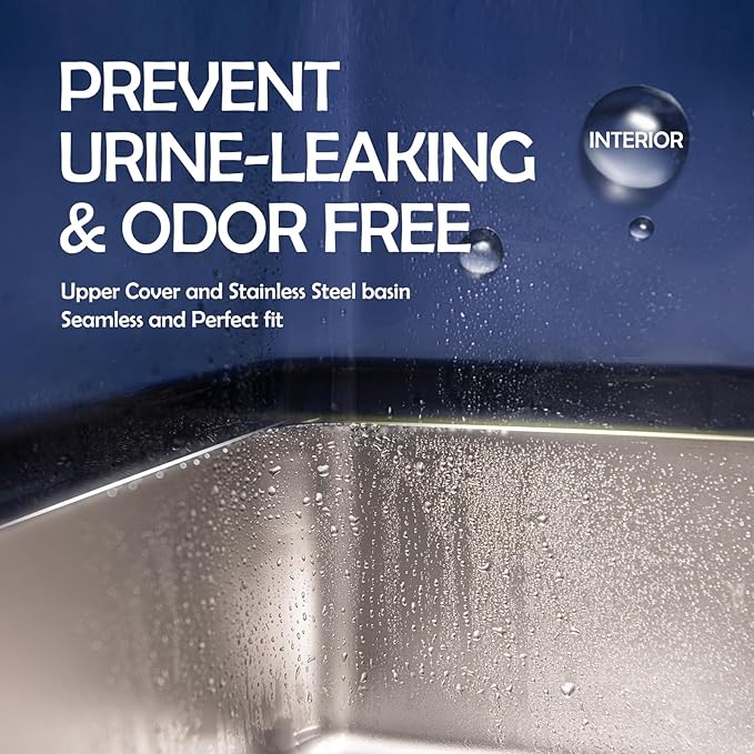 - 【8" Deep Stainless Steel Litter Box for High Peeing Cat 】The stainless steel litter box high sides and totally 16" high can solve the problems that the cats urine and litter leaks to the floor. It never absorbs odors and stains, not rusting, non-sticky bottom