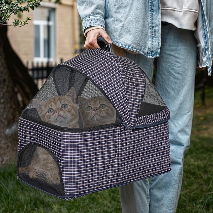 - Upgrade Durable Materials - Designed with high-visibility and breathable mesh, our pet stroller ensures that your pet can enjoy the view and receive ample ventilation, keeping them safe and healthy on the go. Crafted from robust 600D Oxford fabric, the stroller is not only water-resistant but also built to last, offering a secure and durable mobile haven for your furry companion.