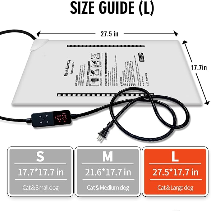 Rest-Eazzzy Cat Heating Pad, Cat Bed with Removable Cover Heated Cat Bed 5 Level Timer and 5 Level Temperature, Cat Beds for Indoor Warming Mat for Cat Dog (Heat pad, Pure-Blue,L)