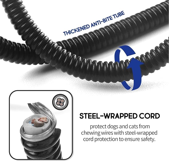 - 【ANTI-ELECTRIC SHOCK】- The cable is adopted with an encircling bendable bite-proof hose, chew, and pull-resistant, so no worry about pets being electrocuted!