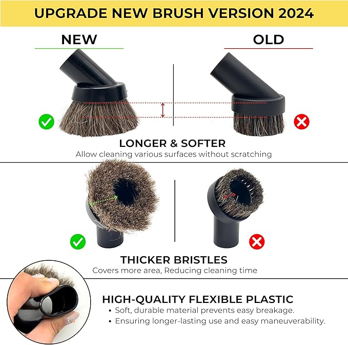 - Horse hair Vacuum Dust Brush Attachment: The horsehair brush is super soft so you can use it anywhere and don't worry about scratching the surface. The standard inner diameter of the interface is 32mm/1.25inch.