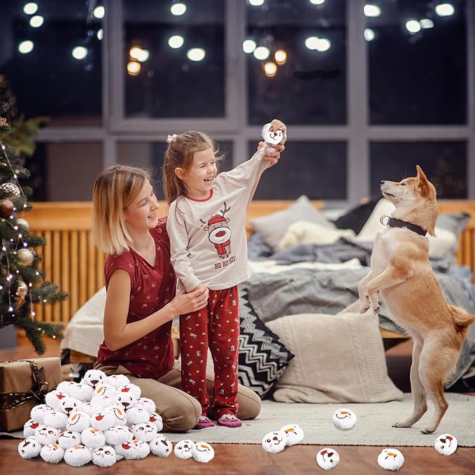 60 Pcs Christmas Dog Toys Squeaky Plush Balls, Soft Puppy Snowball with Dog & Snowman Smile, Christmas Pet Squeaker Fluffy Ball for Interactive Small & Medium Dogs Xmas Toys Party Decorations