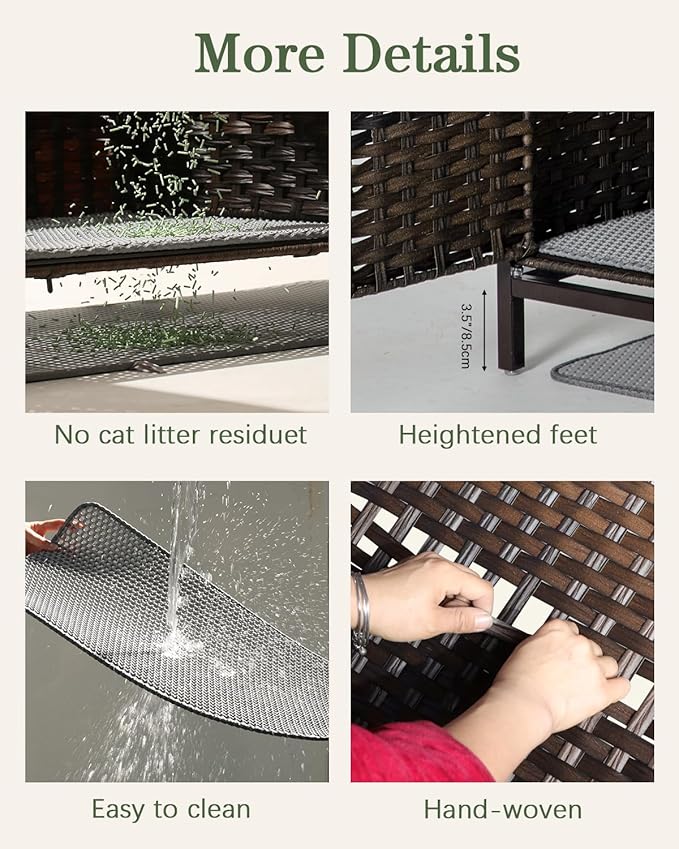 - Quality Build: The hidden litter box is hand-woven from odorless rattan material, hidden cat box is safe for cats to touch. The woven rattan is both waterproof and easier to clean, hidden litter box furniture making your cat and you more comfortable
