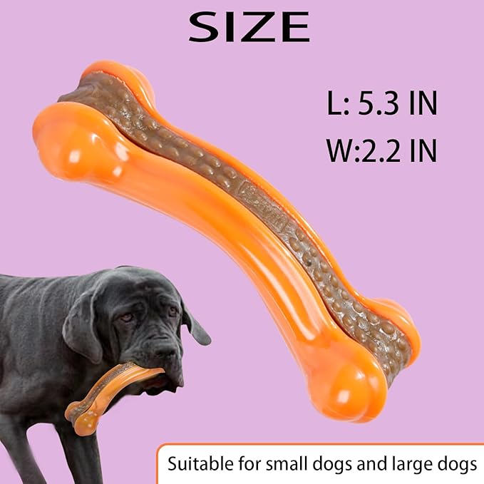Dog Bones Chew Toys for Aggressive Chewers Large Breed, 2 Pack Real Beef Flavor,Indestructible Teething Chew Toys for Large/Medium/Small Breed,Tough Toy with Durable Nylon
