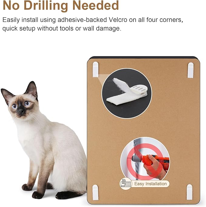 Ownpets Wall Cat Scratcher, Cute Vertical Cat Scratching Board, Wall Mounted Cat Scratch Pad for Wall, Glass, Wood, and Tile, Furniture Protector, Black