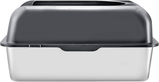 - Fit for High Urine Cat: The stainless steel litter box features a deep base with a height of up to 6 in and high sidewalls measuring 6.38 in (162 mm). This design avoids urine and litter from splashing out, keeping your environment cleaner and lowering the need for frequent clean-ups.