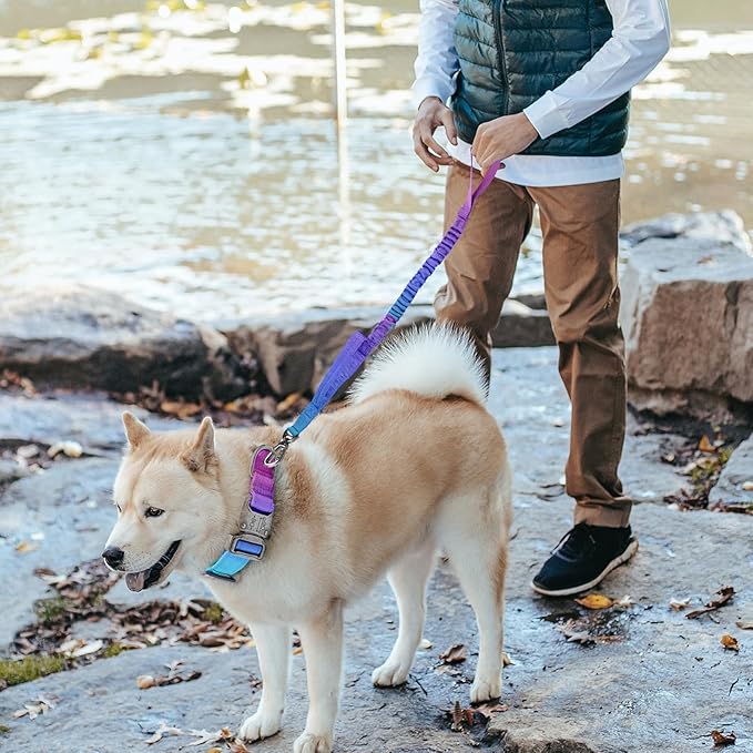 - 【TACTICAL DOG LEASH】This bungee dog leash has two control handles, one handle at the end and one soft padded handle near the clip. The one close to the clip or collar area is nice to get control quickly on busy sidewalks, bike lanes, and crowded areas.Suitable for training dogs, hunting dogs, samoyed, shepherd, perfect for large dogs and medium dogs.