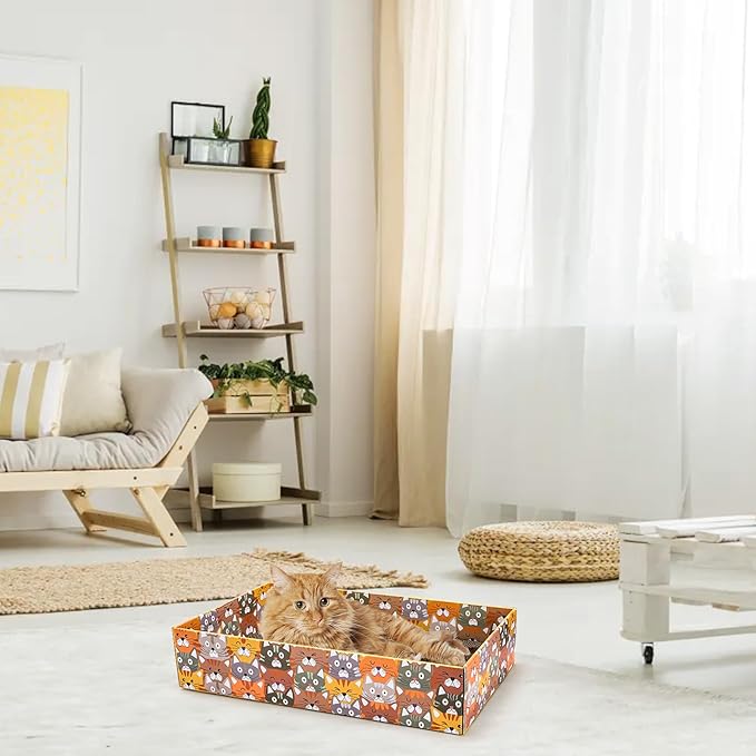 - High Quality Material: Our cat scratcher bed is made of heavy duty cardboard, totally premium and durable. The dense corrugated surface can withstand sharp claws for a long time, helping your cat stretch and keeping your cat's claws trimmed and well-maintained.