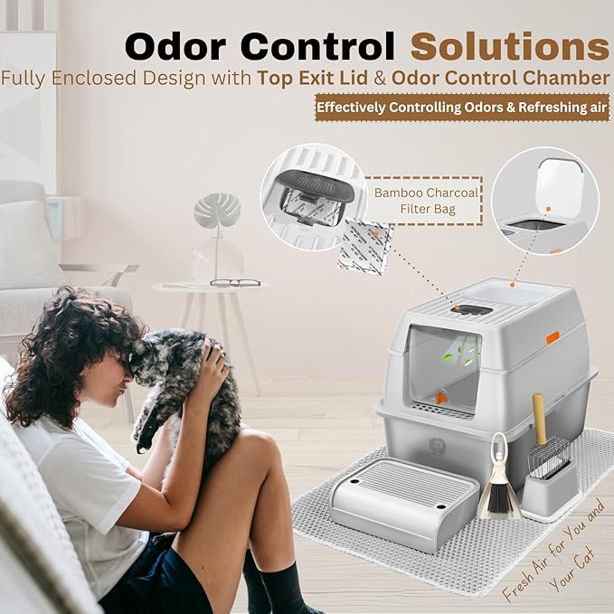 - Easy to Clean & Mess-Free Smooth, non-stick stainless steel surface of this metal litter box with lid and covered stainless steel litter box makes cleaning effortless. High-sided walls, the Elevated Step Board, and the Anti-Tracking Mat minimize litter scatter, keeping your home clean and tidyness of cat litter