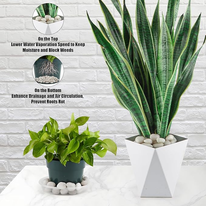 - Benefits For Plants: Pebble tray for plant humidity. These small pebbles for indoor plant keep soil moisture and protect soil from weeds, being dug up by house pets