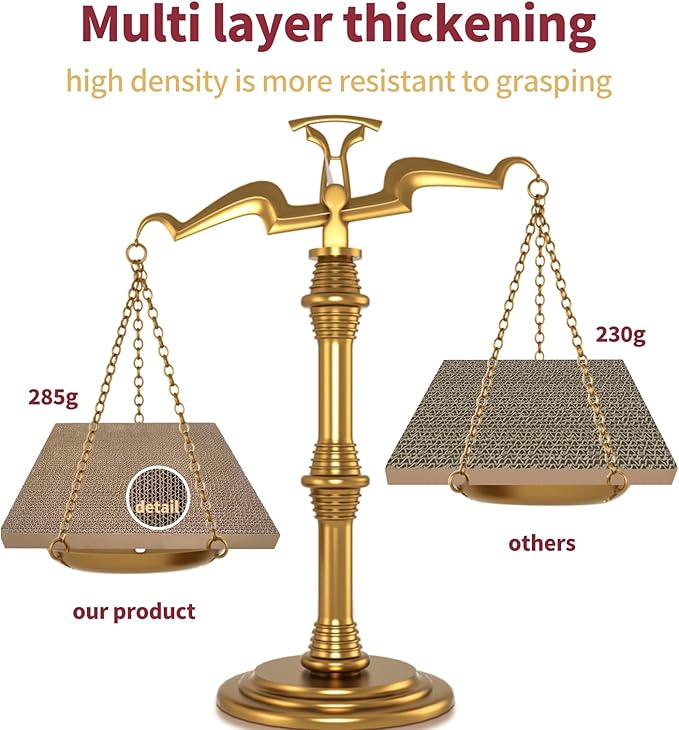 - Reversible for Longer Use: Featuring a double-sided design, these scratchers offer extra scratching surfaces. The high-density cardboard resists wear, minimizing paper shedding and extending the lifespan of each pad, which reduces frequent replacements.