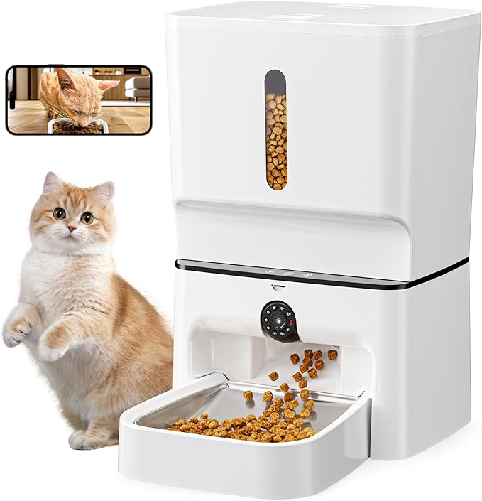 - TWO-WAY AUDIO:The cat feeder has built-in microphone and speakers for real-time communication with pets, and contact with pets when you are away from home.