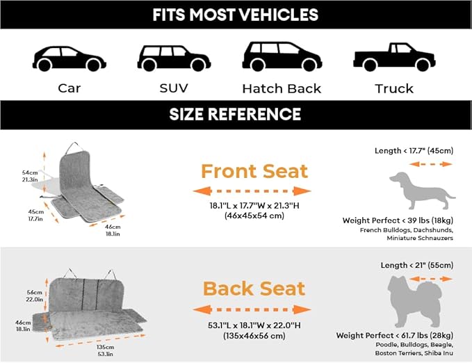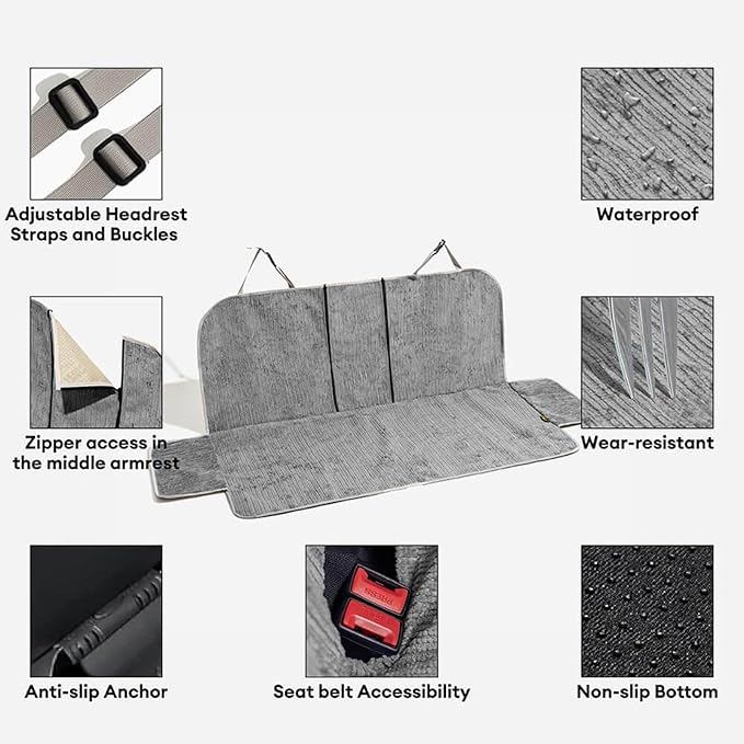 - TOTAL SEAT PROTECTION — Premium chenille fabric is waterproof, scratch- & bite-resistant, keeping mud, drool, and fur off your upholstery so your back seat stays spotless and new
