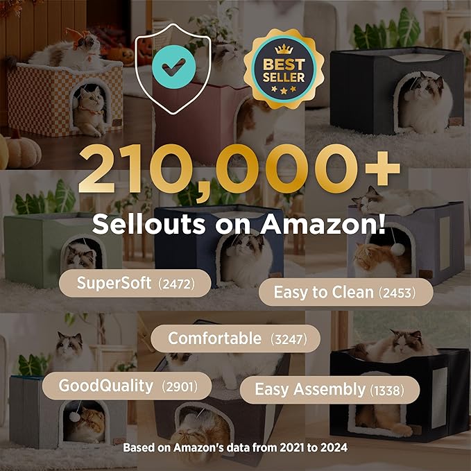- Easy Care & Assembly: This cat cube for indoor cats can be quickly assembled or folded flat for easy storage and travel. Portable and lightweight. The removable cushions feature reversible, machine-washable covers that provide all-season comfort.