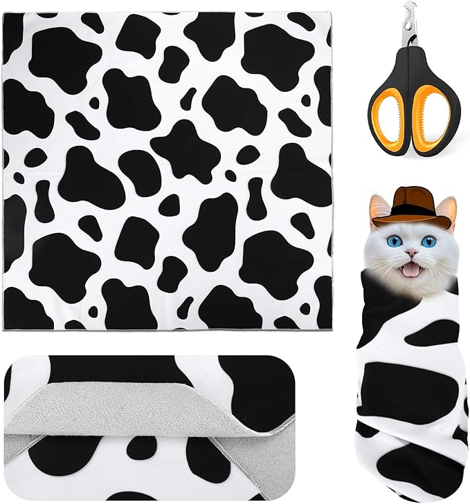 Mity rain Cat Grooming Supplies - Cat Wrap for Cutting Nails with Cat Nail Clipper, Cat Restraint for Nail Clipping to Anti-Runaway/Scratch/Bitten, Cat Swaddle Wrap for Calming & Holding Cat (Large)