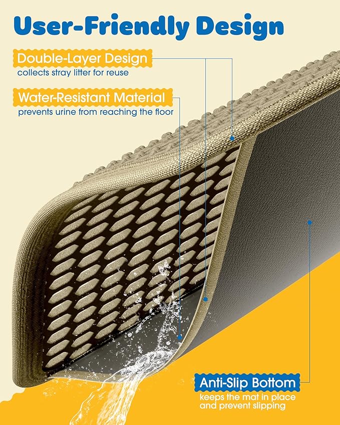 Cat Litter Mat - 23.2'' x 29.1'' Large Litter Trapping Mat, Easy to Clean Litter Box Mat, Waterproof, Urine-Proof, Non-Slip Kitty Litter Mats for Floor, Beige
