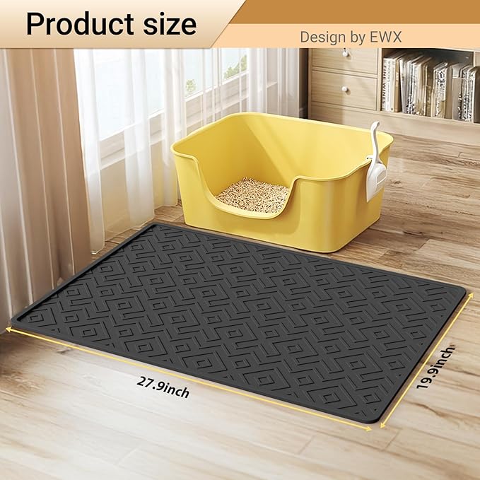 - Large Cat Litter Mat – Traps Litter & Reduces Mess – This 28"x20" silicone cat litter mat effectively traps litter from your cat’s paws, preventing scatter and keeping floors clean. Perfect for use with any litter box, offering excellent coverage for small to medium spaces.