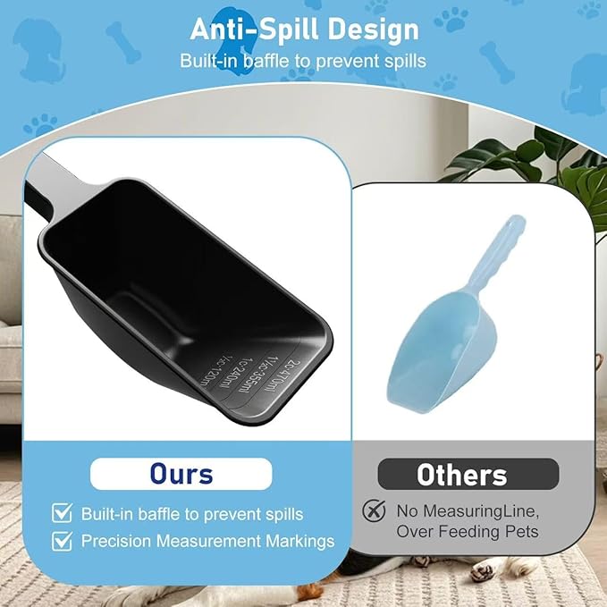 • swesara Food Scoop 2 PACK ,2 Cup Capacity Dog Food Scoop With Measuring Lines For Dog, Puppy and Cat Coffee Bean Scoop, Flour Scoop (Large Black)