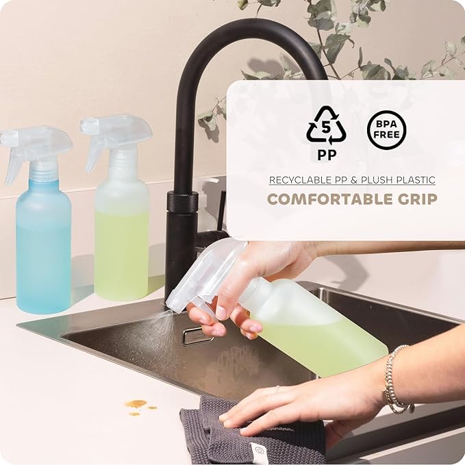 - [ Eco-Friendly & Safe ]- Made from premium PP plastic, our BPA-free food grade misting bottles feature durable, leak-proof components that ensure long-lasting use. Plus, the clear design lets you monitor content levels at a glance
