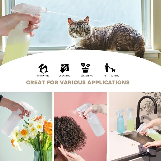 - [ For Various Liquids ]- Fill your mist bottle with a range of formulas, from water, bleach, alcohol, vinegar, liquid soap, cleaner, essential oil to coconut oil, Perfect for use around the house garden, or for dog or cat training or grooming