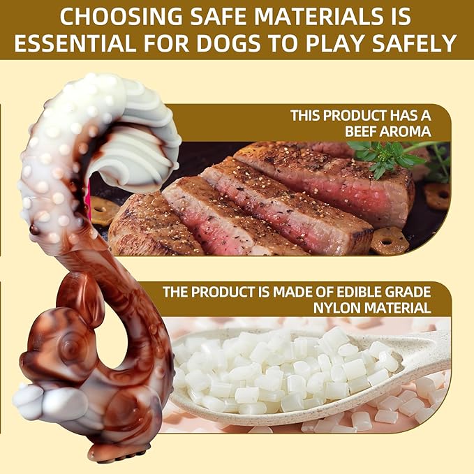 - [ Natural Beef Scent for Extended Engagement ] Infused with a natural beef aroma, these Dog Chew Toys are designed to captivate dogs' attention. The irresistible scent keeps dogs engaged for hours, making these Indestructible Dog Toys the perfect choice for dogs who need stimulation and entertainment during solo play or interactive sessions.