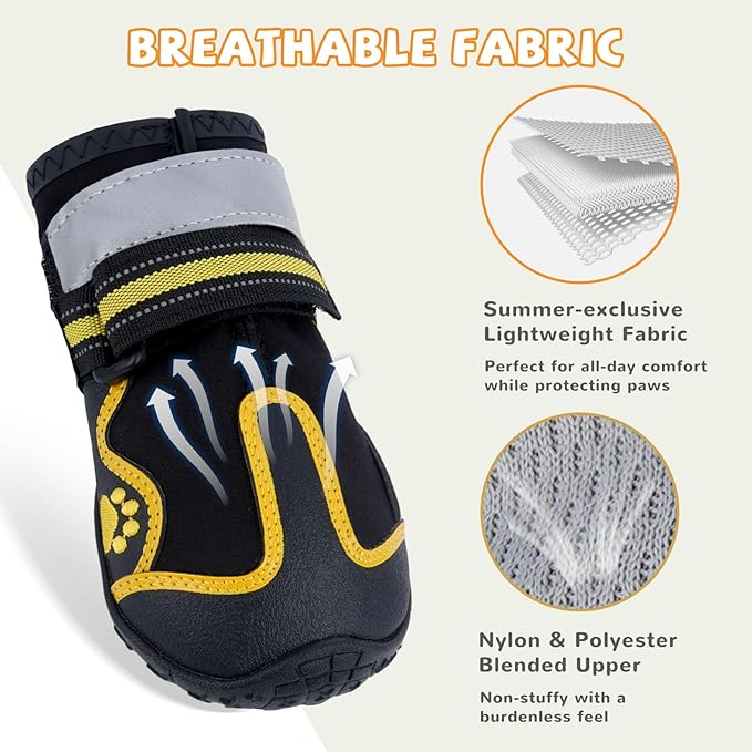 Dog Shoes for Hot Pavement,Dog Boots & Paw Protectors for Large Medium Size Dogs to Prevent Licking,Dog Booties with Reflective for Outdoor,Hiking,Hardwood Floors,Winter Snow(Black Yellow, Size1)