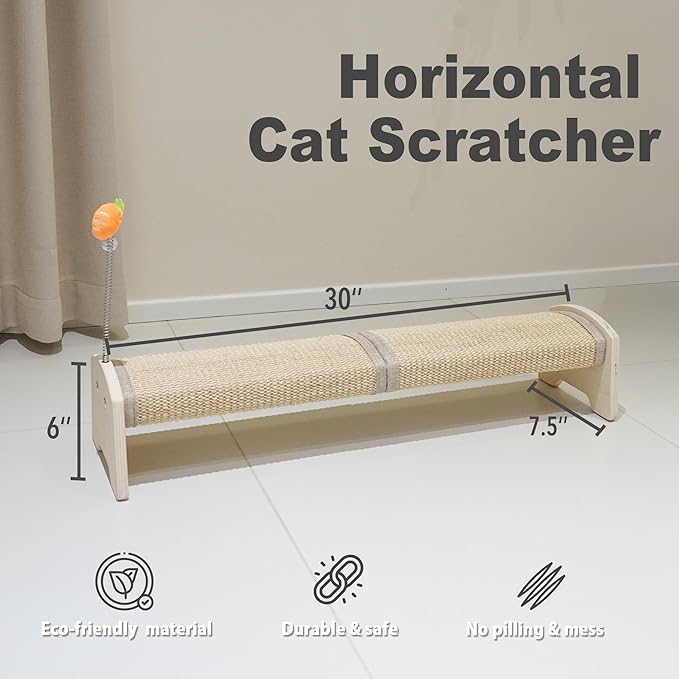 - LARGE HORIZONTAL SCRATCHER: Unlike wobbly vertical scratchers, our 30" horizontal scratching post offers a stable surface that won’t tip over. Give your cats a safe and satisfying place to scratch and stretch.