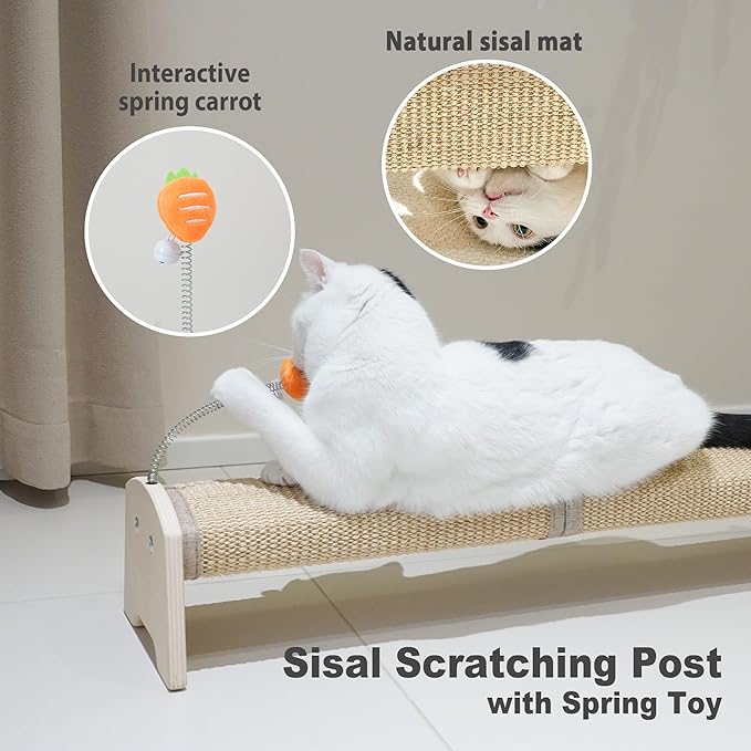 - NATURAL SISAL MAT: Wrapped in a durable, pet-safe sisal mat—designed to satisfy your cat’s natural scratching instinct and built to last longer than flimsy cardboard alternatives.