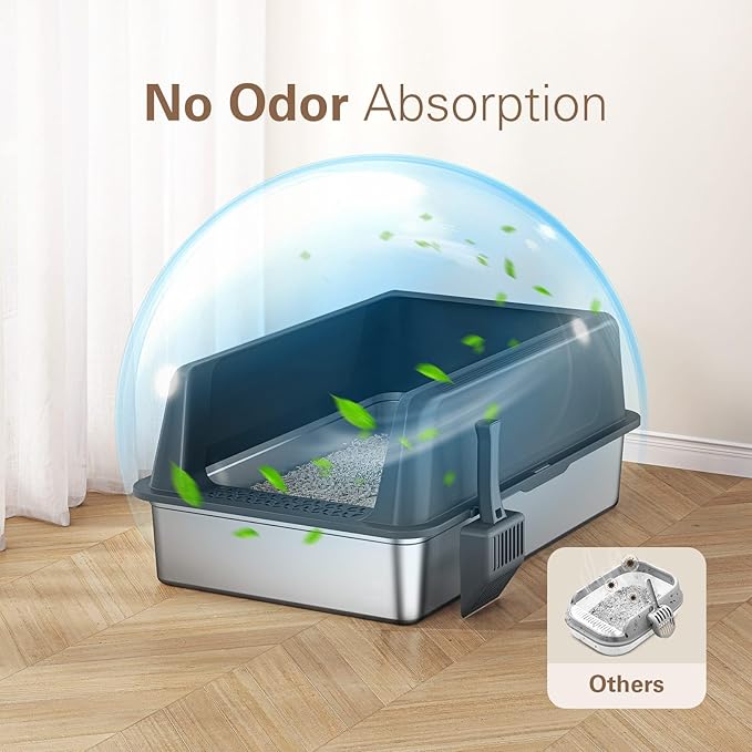 Zarler XXL Stainless Steel Litter Box, Extra Large Cat Litter Boxes 27.8" L x 20" W x 12.9" H, Jumbo Metal Litter Box with Lid for Multiple Cats, High Sided, Non-Sticky, Anti-Urine Leakage (Black)