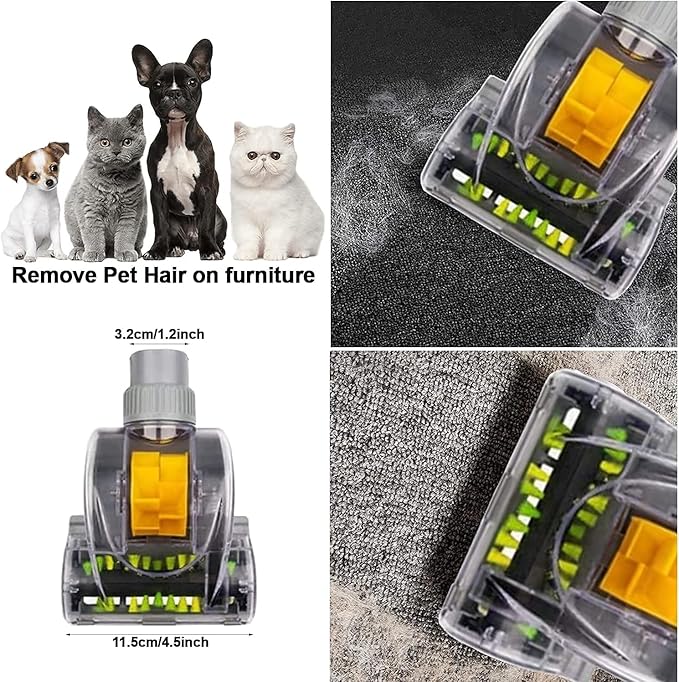 - ✔️ No Electricity Needed – Powered by Airflow – The high-speed rotating brush is driven by the vacuum’s airflow, providing powerful suction without requiring batteries or an extra motor. [NOT recommend for high-pile carpets]