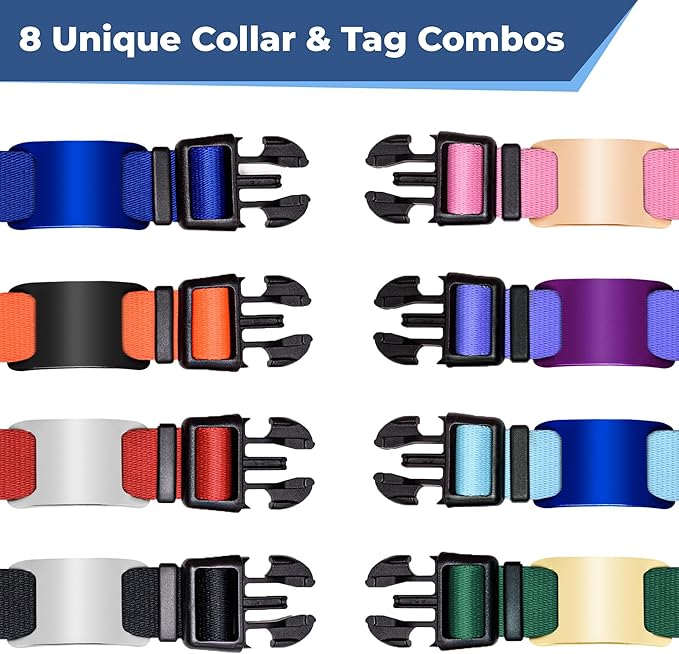 GoTags Dog Collar with Personalized Nameplate, Adjustable Dog Collar with Custom Engraved Slide On Pet ID Tag in Stainless Steel, Silent, No Noise Dog Tag Small to Large Unique Colors