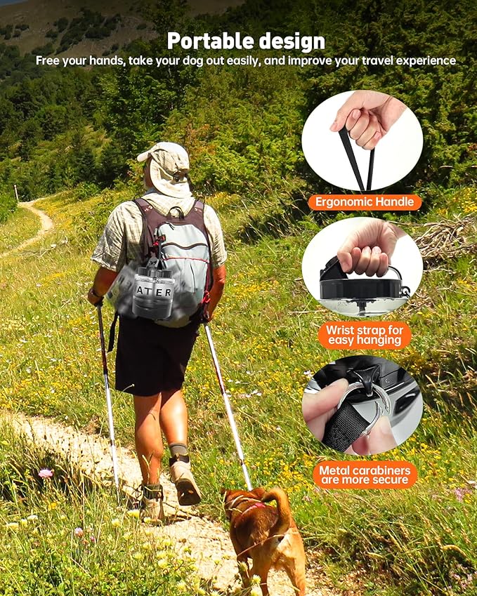 - Enhanced Durability: This water bottle for dogs on the go adopts a thickened bottle body + anti-fall design, which is durable and can be used in high-intensity scenarios such as outdoors, camping, walking, beach, hunting, etc., reducing the risk of damage, and can be used for a long time without frequent replacement
