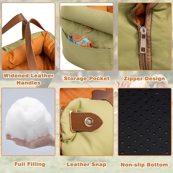 - Portable with Smart Storage: Includes a reinforced handle for easy carrying, side pockets for toys and snacks, and a fully removable, machine-washable design; compact size fits small to medium pets and most car seats.