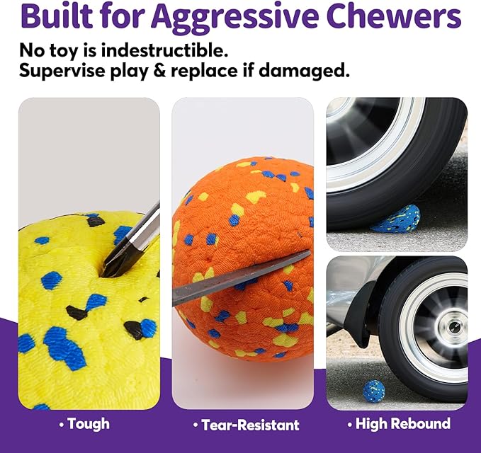 Dog Balls Tennis Ball for Aggressive Chewers, Dog Bouncy Balls Chew Toys Water Toy Fetch Ball for Large Medium Small Puppies, 3 Pack 3.15''