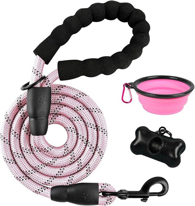 BARKBAY Dog Leashes for Large Dogs Heavy Duty Dog Leash 4/5/6 FT with Comfortable Padded Handle and Highly Reflective Threads for Medium Large Dogs Walking Training Running (5FT-1/2,Baby Pink)