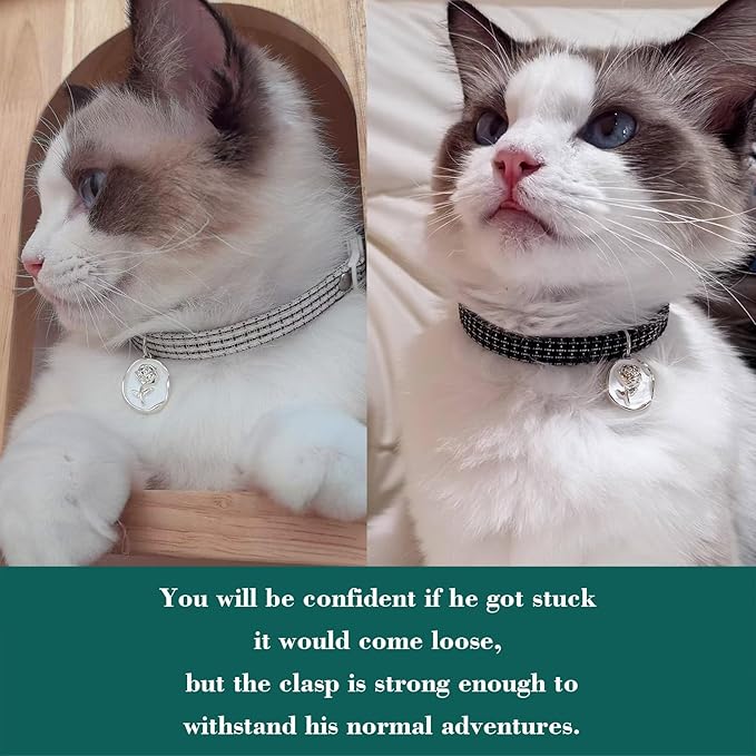 - SAFE BREAKAWAY CAT COLLAR:The sturdy detachable safety release buckle can be unlocked with a certain amount of force.If your pet is trapped,it can freely break free to avoid the pet being strangled by the collar, ensure the safety of the pet