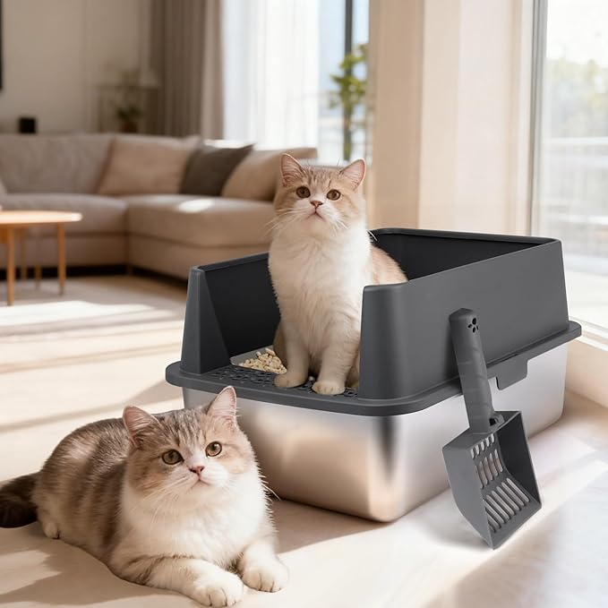 - 【Stainless Steel Sifting Cat Litter Box】Unlike plastic litter box, our stainless steel litter box is non-stick, rust-proof, easy to clean, anti-scratch, no stains and odor residue, sturdy and durable, long service life, which can reduce the frequency of replacement.
